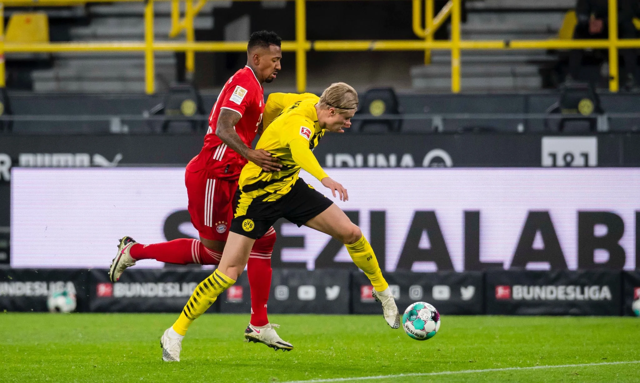 Баварія Фліка – топ. Однак всі знають, як створити мюнхенцям проблеми. Виконувати передачі за спини захисникам. Протистояння швидкого Холанда з повільним Боатенгом і Алабою, який втрачає позицію, виглядало однозначно на користь Борусії. Господарі непогано цим користувалися, проходячи пресинг суперника одним пасом вперед. Меньє, Аканджі та Хуммельс часто закидали, а Холанд виривався на оперативний простір. Задумано все було чудово, от тільки Ерлінг лише раз нормально пробив.