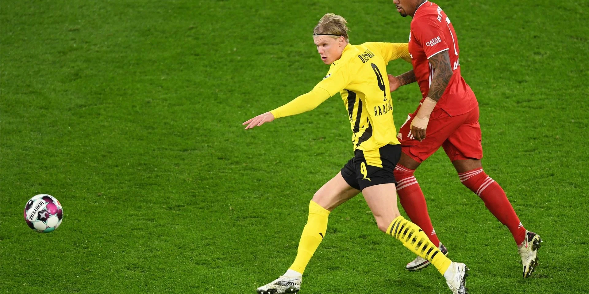 У середині першого тайму супершанси почергово виникали біля обох воріт. Боатенг після розіграшу кутового накинув на голову Горетцки – на місці Буркі. Дортмунд впіймав гостей на контратаці – Рейна та Холанд все робили правильно, але норвежець не влучив у дальній кут. Баварія навіть забила внаслідок класної атаки з глибини за участю Боатенга, Комана та Гнабрі, але VAR знайшов у автора гола Лєвандовскі мікроскопічний офсайд.
