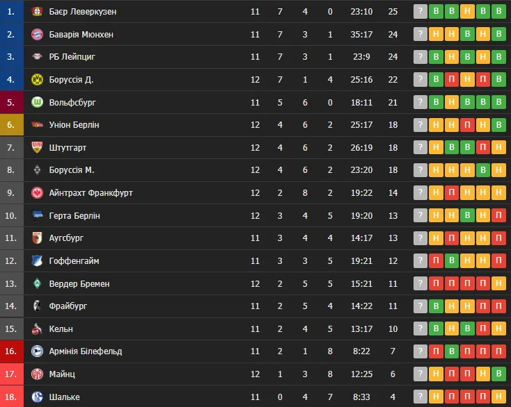 В рамках 12-го туру німецької Бундесліги провели чотири матчі. Звіт про них читайте на "Футбол 24".