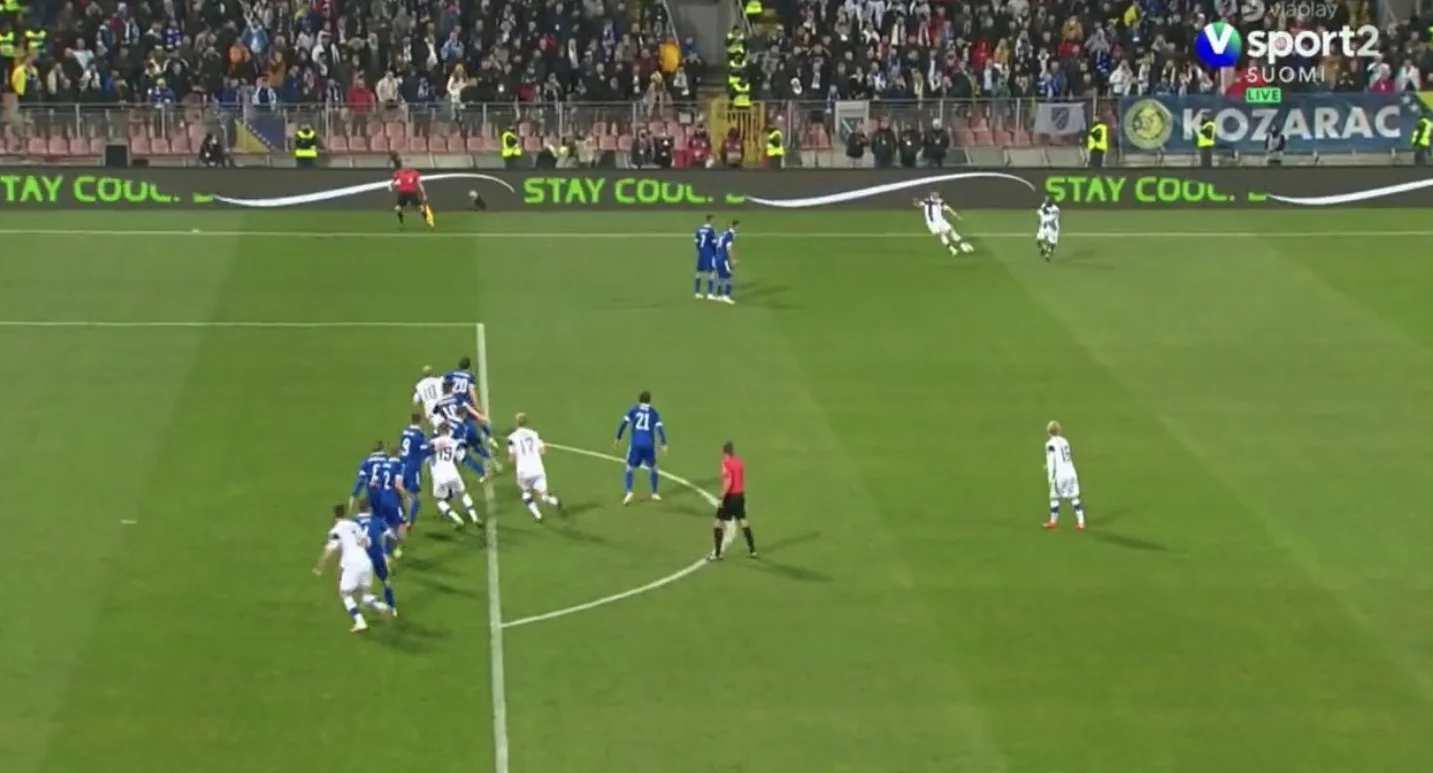 Фіни погано сканують простір навколо себе. У них багато індивідуальних помилок. Вони невиразні при захисті на стандартах, та і загалом команда неакуратно працює у власному штрафному – настільки неакуратно, що Боснія і Герцеговина провела аж 19 ударів з його меж, а 4 постріли пройшли із зони воротарського майданчика. Якби у господарів був Джеко, підопічні Маркку Канерви могли б пропустити набагато більше голів.