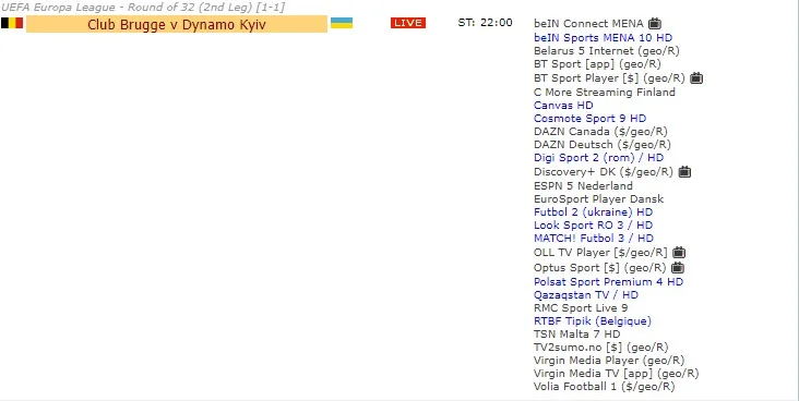 Брюгге – Динамо: де дивитися матч 1/16 Ліги Європи