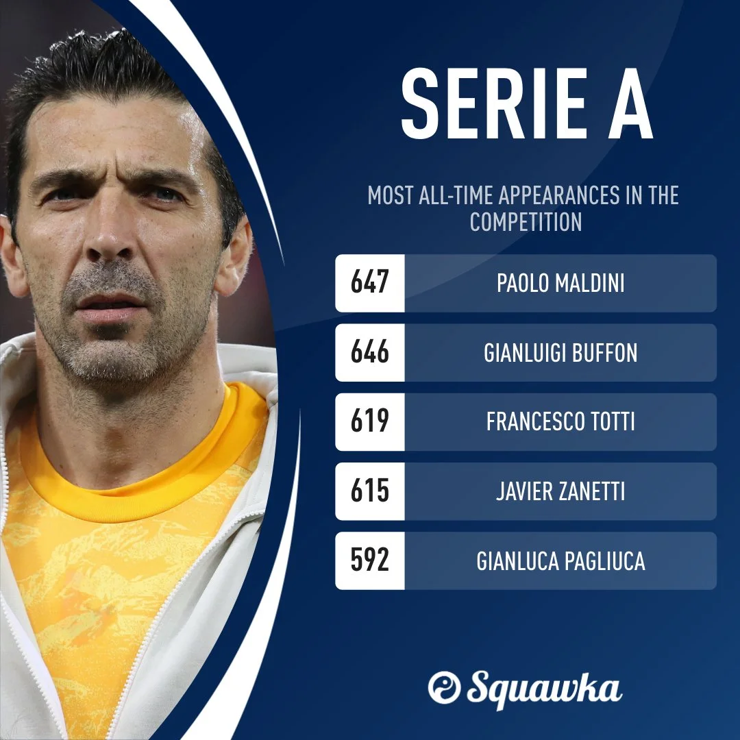 Якщо враховувати виступи Буффона за Парму, то сьогоднішній поєдинок став для нього 646 у Серії А. Легендарний голкіпер за крок від абсолютного рекорду – у Паоло Мальдіні на один матч більше.