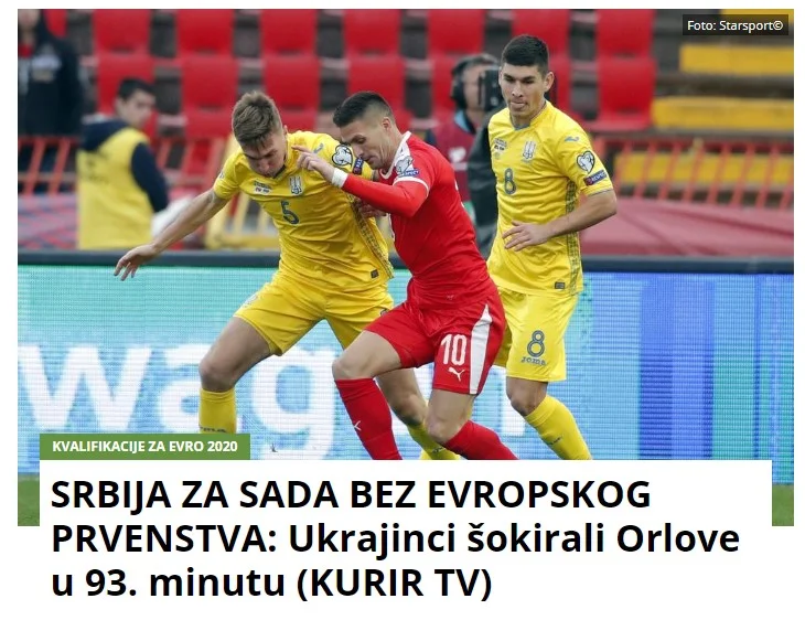 "Провал розпочався з України та завершився Україною. Збірна Сербії тримала в руках перемогу над командою Андрія Шевченка, але отримала удар у додатковий час і безславно завершила відбір на чемпіонат Європи. Серби двічі лідирували, але українці двічі камбекали – спершу забив Яремчук, а потім резервіст Бєсєдін. Вони пройшли кваліфікацію непереможними.