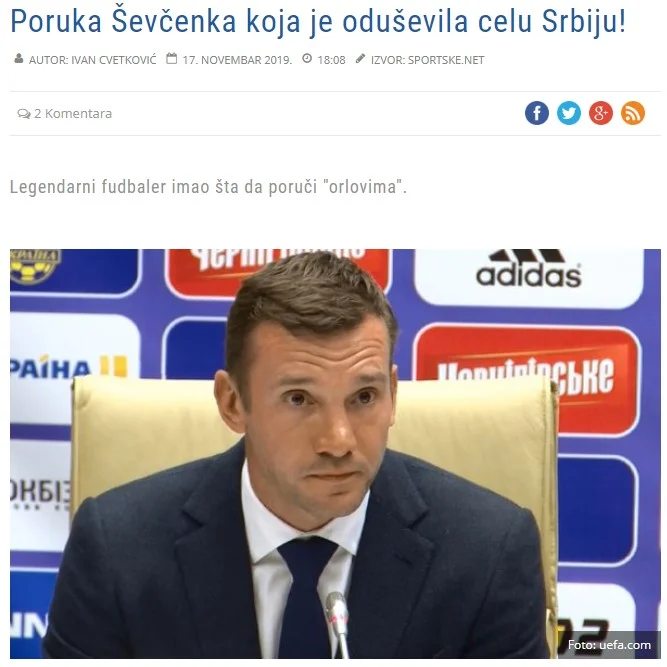 Вся сербська преса, і Sportske зокрема, з захопленням розтиражувала післяматчеві компліменти Андрія Шевченка їхній збірній з побажаннями вийти на чемпіонат Європи через плей-офф Ліги націй.