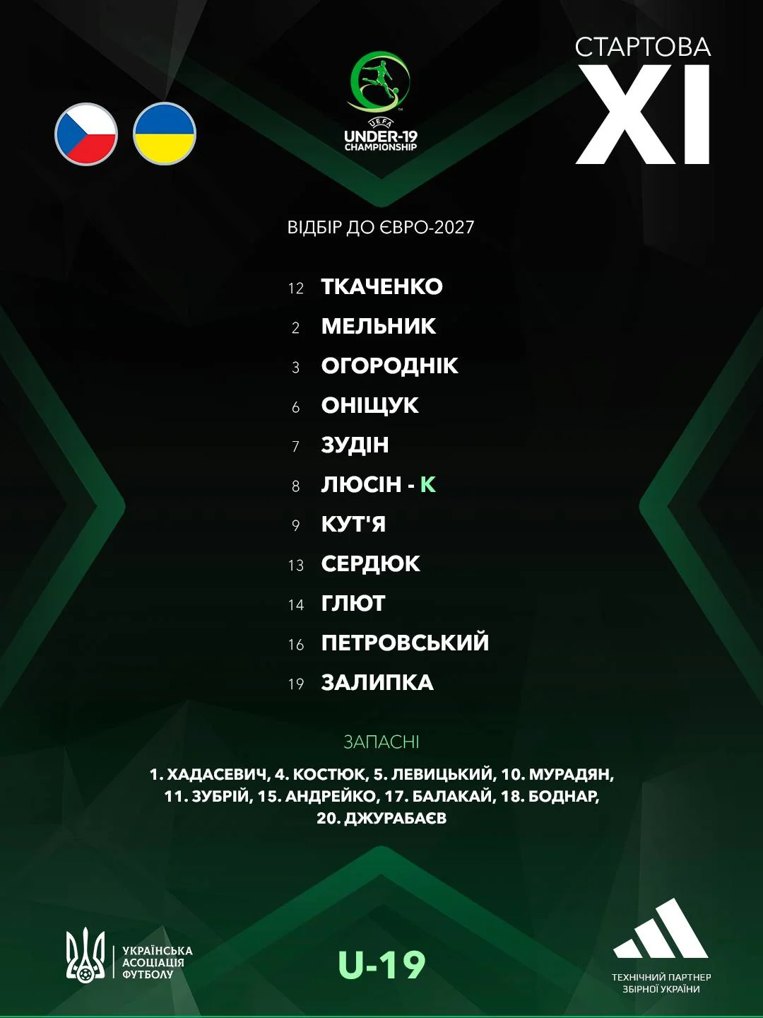 Чехія – Україна: стартовий склад та безкоштовна онлайн-трансляція матчу відбору Євро U-19
