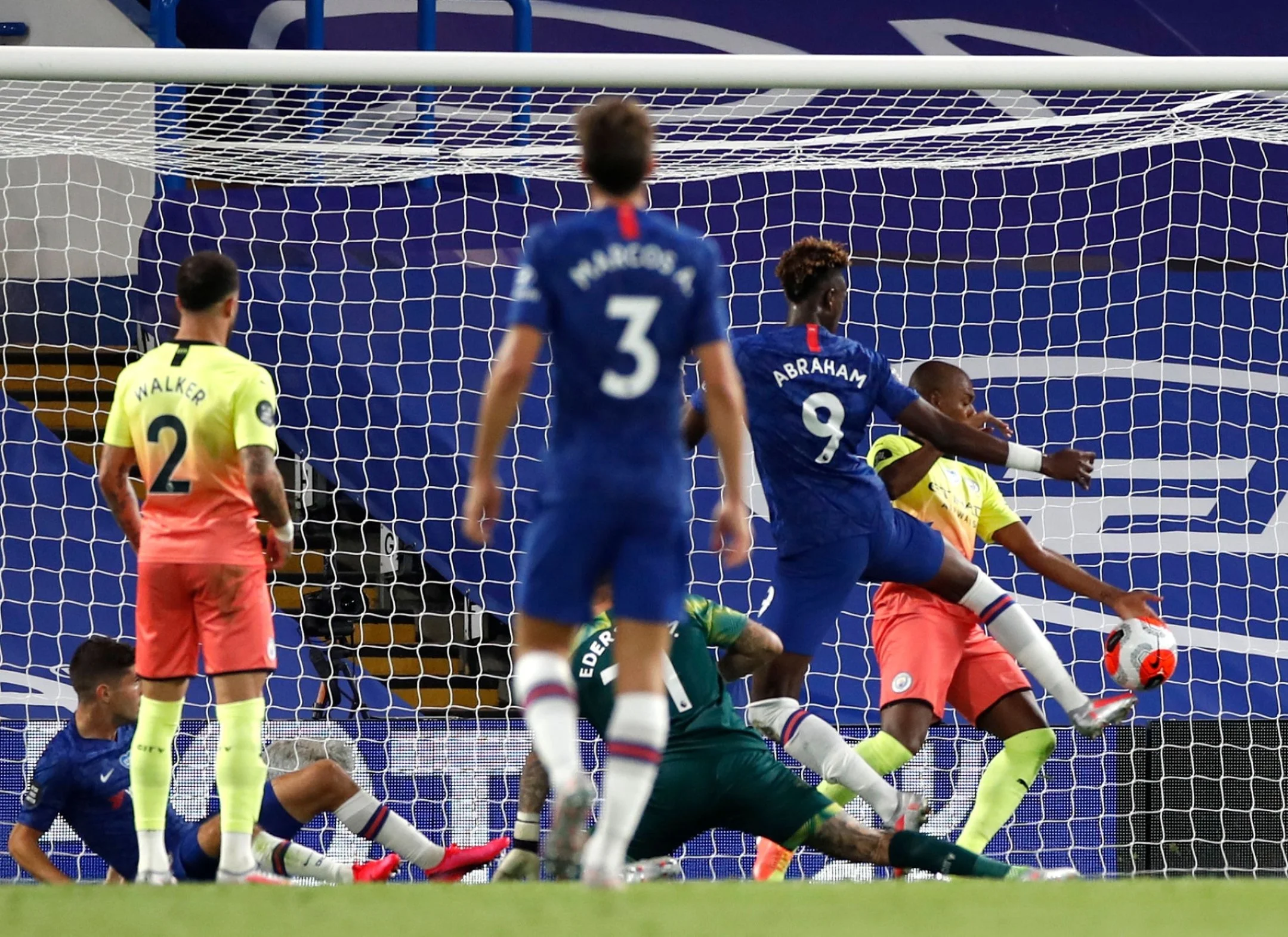 На 75-й же стався найбільш епічний момент зустрічі. Вілліан увірвався на правий край штрафного та викотив пас у центр під удар Абрахаму, однак його парирував Едерсон. Пулішіч летів на добивання з метру, але Едерсон встиг врятувати і тут. М'яч відскочив до Абрахама, який вистрілив з меж воротарського й примудрився влучити у Фернандінью – втім, на повторах помітили, що бразилець підіграв собі рукою. Стюарт Атвелл вилучив Фернандінью, призначив пенальті, а Вілліан впевнено його реалізував – 2:1!
