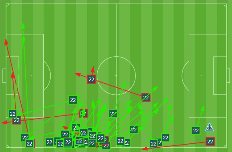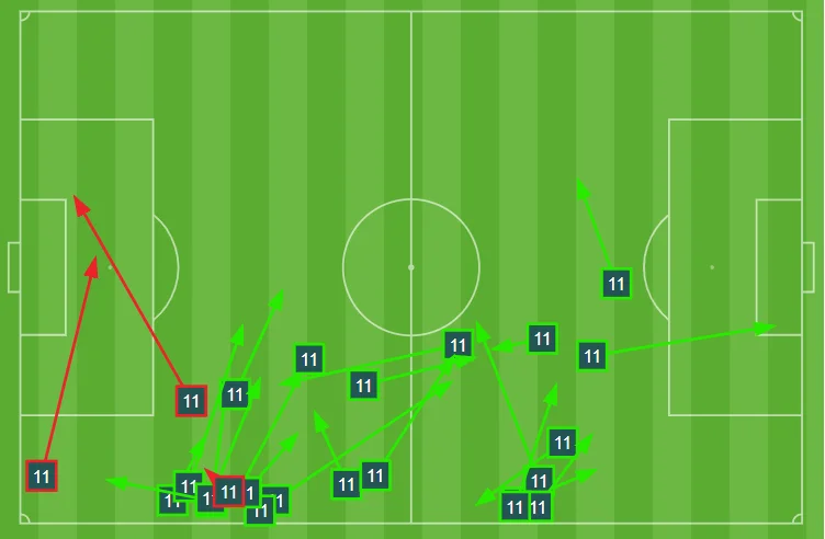 Щоправда, він серйозно переважав за точністю передач (95%), але їх було вдвічі менше, ніж у Бена – до речі, обидва кроси Зінченка виявились невдалими. Характер пасів також особливо не відрізняється від того, що продемонстрував француз.