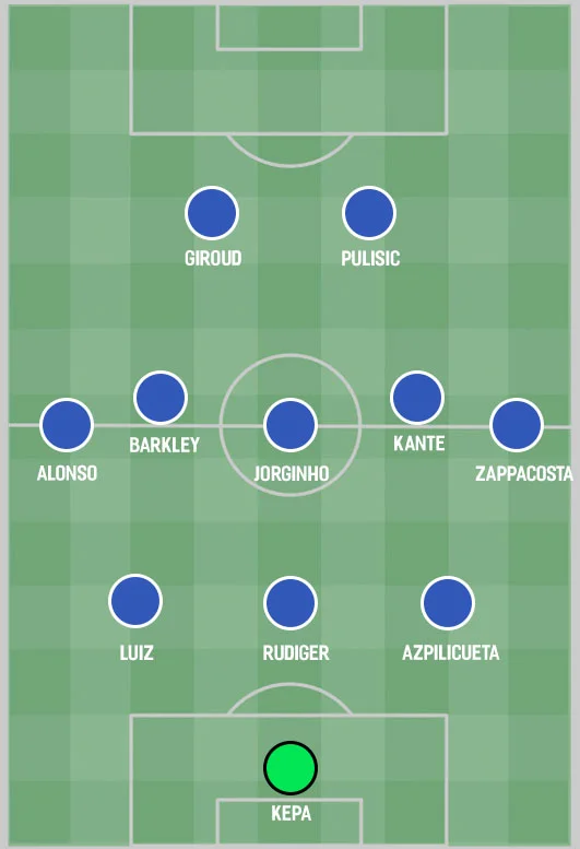 Жоржінью може виконувати роль Френкі де Йонга перед вже знайомою четвіркою позаду, Канте "отримає ліцензію" не бродити в стилі епохи Саррі. Барклі підходить на роль Донні ван де Беека, опускаючись в оборону та водночас приєднуючись до атак.