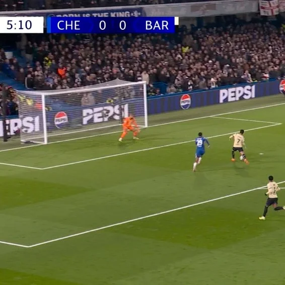 На 22-й хвилині Челсі забив вдруге. Естевао подав зі стандарту на лінію воротарського, Чалоба по м'ячу не влучив, однак на дальній стійці по ньому пробив Енцо Фернандес – втім, VAR знову захистив Барсу! Гол не зарахували, адже Чалоба перебував у офсайді та явно впливав на епізод (висмикнув Жоана Гарсію).