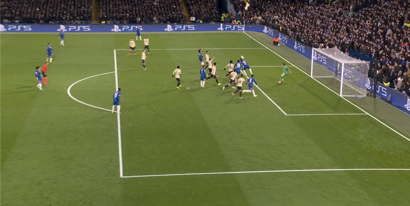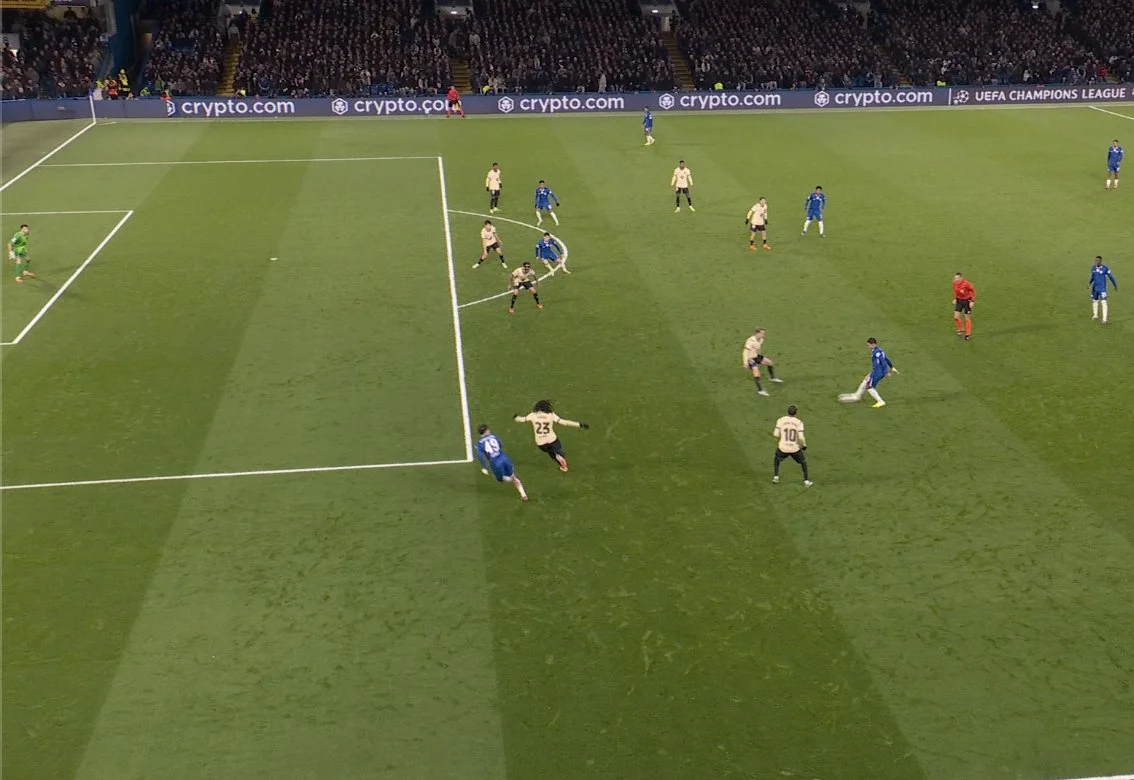 Гол прилетів після розіграшу кутового. Нету змістився на кут штрафного й виконав подачу, а Фофана зачепився за неї та прокинув собі на хід в правий край (його не зміг стримати Лєвандовскі) – зрештою, француз прострілив з гострого кута. Енцо Фернандес замкнув, але VAR помітив гру рукою у Фофана.