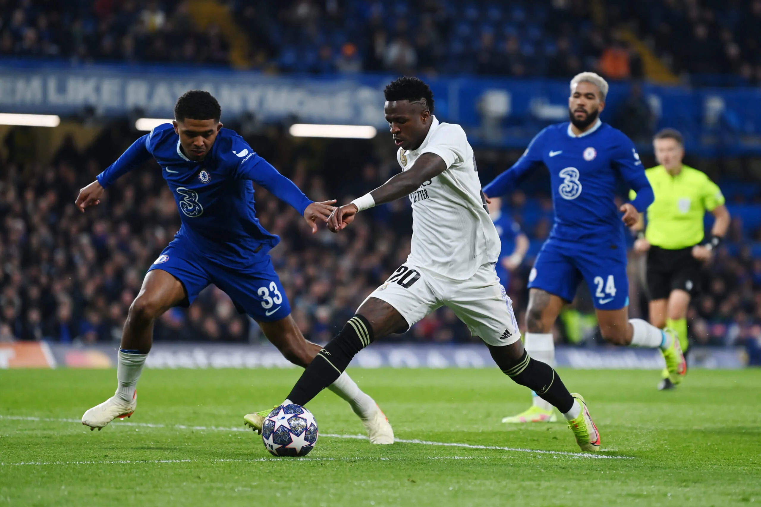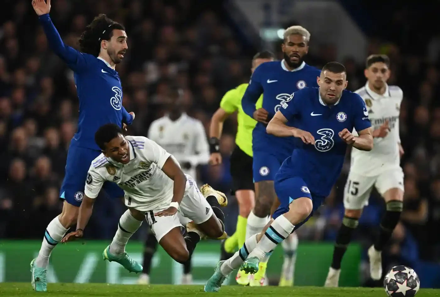 Втім, ще до цього епізоду "вершкові" стали відчувати проблеми. Пресинг Челсі все частіше виливався у помилки на власній половині, а згодом намітилась вразливість на лівому фланзі. Лондонці користуватись вільними зонами за Вінісіусом і тиснули на непрофільного фулбека Камавінгу – там постійно відкривався й пресингував Джеймс.