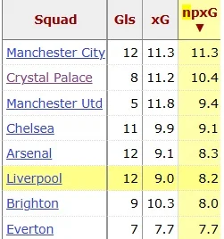 За очікуваними голами без пенальті Ліверпуль йде шостим в АПЛ