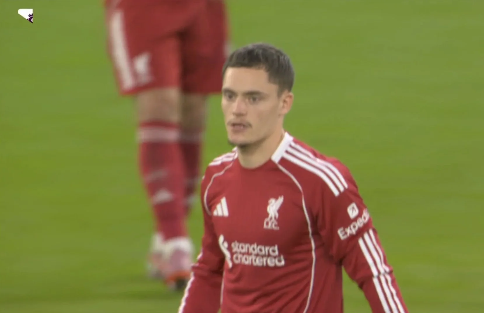 Арне Слот у роздягальні замінив Бредлі, якого Гарначо всадив на жовту картку, а замість нього випустив Вірца. Собослай сів на позицію правого фулбека. Через 10 хвилин тренерський штаб зняв ще й Конате, опустивши Гравенберха в центрі оборони. Замість нього вийшов Джонс, який закрив правий фланг оборони й дозволив повернути Домініка в півзахист, а Робертсон вийшов замість Керкеза.