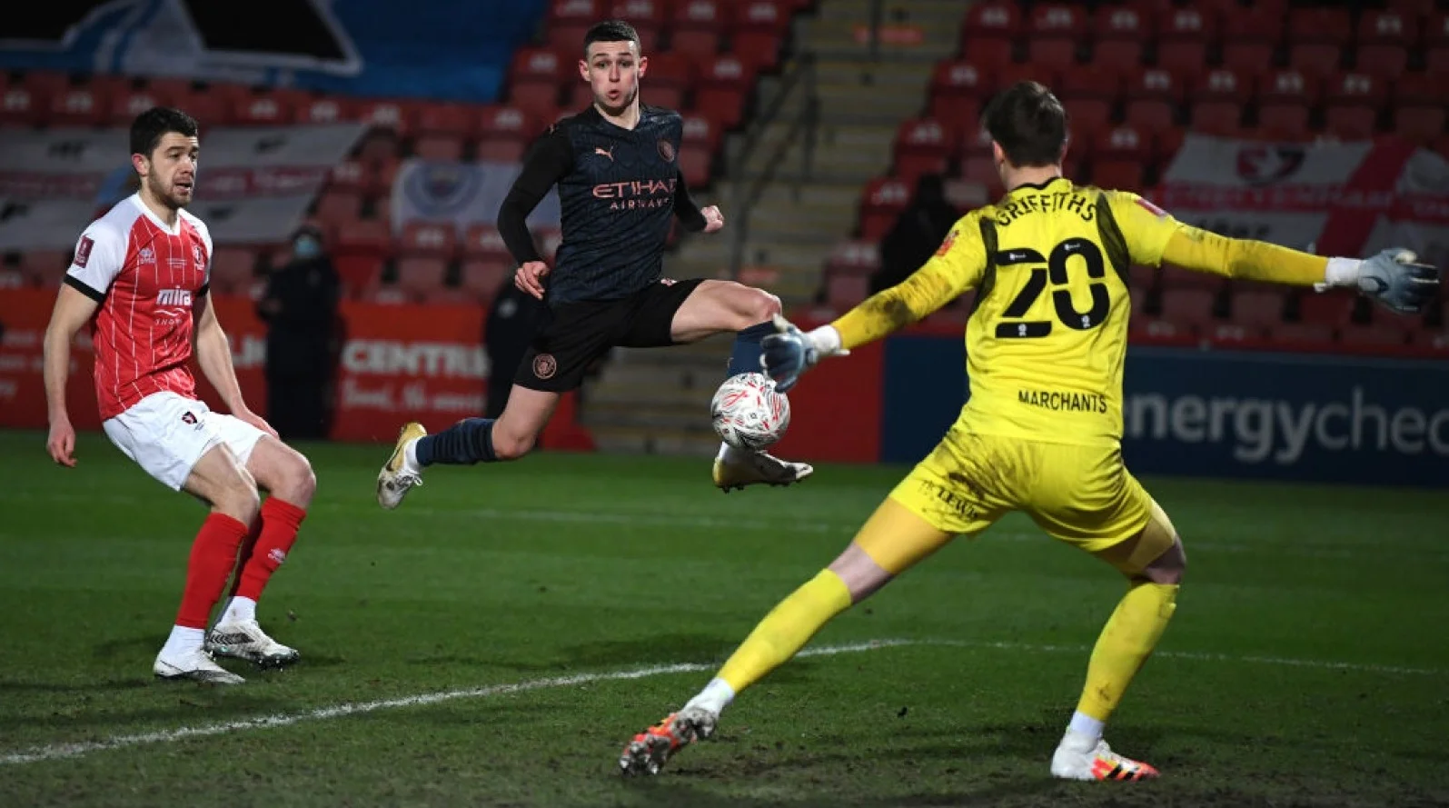 На 60-й хвилині капітан Челтенхема вкинув м'яч аж на лінію воротарського, де Ляпорт програв повітря (апелював, що його штовхали), а Алфі Мей проштовхнув сферу в сітку! Аутсайдер повів у рахунку! А Пеп кинувся робити заміни. Однією з жертв став Менді, замість якого вийшов не Зінченко, а Канселу.