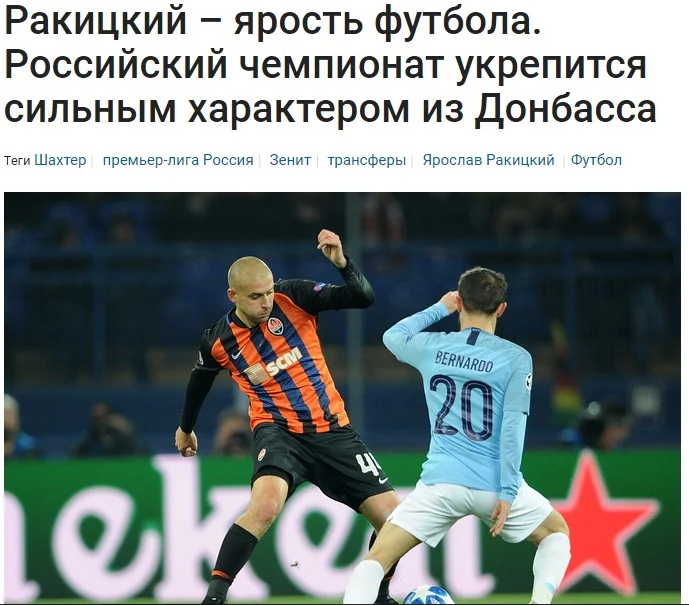 "Російський чемпіонат зміцниться сильним характером з Донбасу", – так назвав свій матеріал колишній прес-аташе Шахтаря Руслан Мармазов, який відомий своєю антиукраїнською позицією та є палким прихильником так званих "ДНР" та "ЛНР". Він вважає перехід Ракицького в Зеніт позитивним як для клубу, так і для самого гравця.