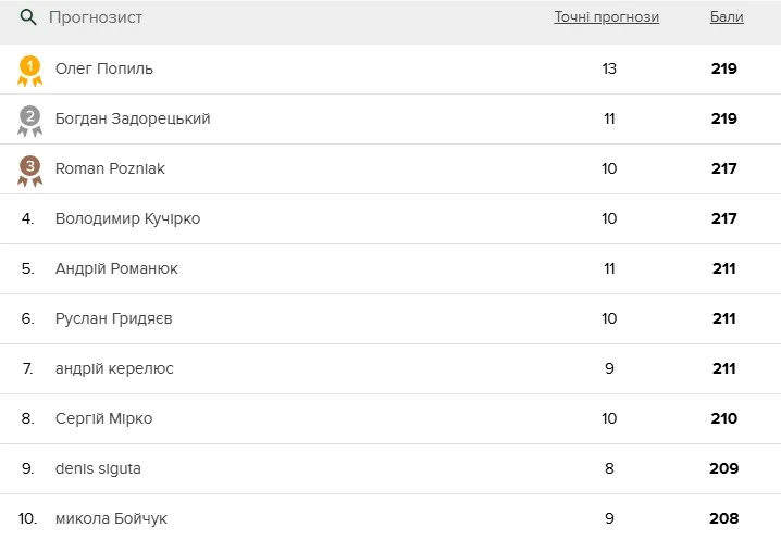 Топ-10 прогнозувальників тижня