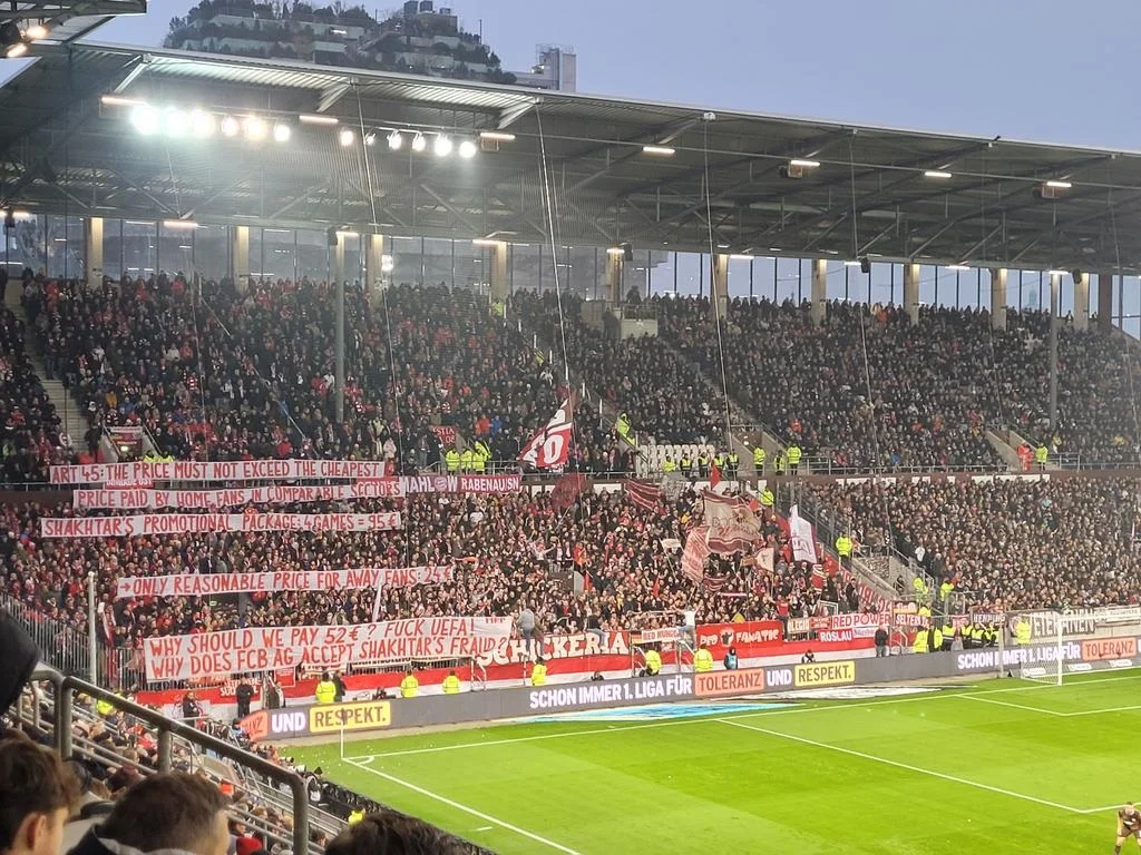 Донеччани встановили високі ціни для гостьових уболівальників: мінімум 105 євро за місце з сидінням та 52 євро, щоб стояти. Ультрас Баварії вже оголошували бойкот, а сьогодні під час матчу Бундесліги вивісили банер.
