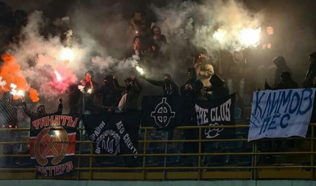 Фанати донецької команди під час матчу 20 туру чемпіонату України Чорноморець – Шахтар за допомогою піротехніки запалили російський прапор. Поки горів триколор окупантів, активні вболівальники співали Гімн України.