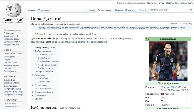ЧС-2018: Віду в російській "Вікіпедії" назвали чортом і приписали йому громадянство України