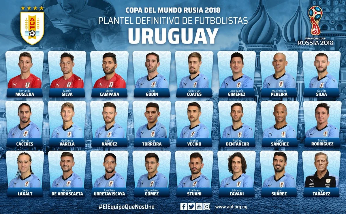 Головний тренер збірної Уругваю Оскар Табарес назвав 23 футболістів, які потрапили в остаточну заявку національної команди на чемпіонат світу 2018 року.
