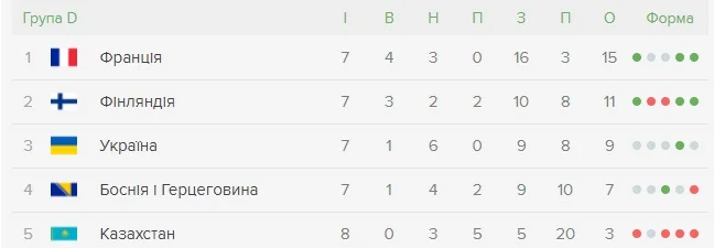 Безумовно, найцікавіша для нас група. Володар першого місця визначився в суботу – переможцем групи прогнозовано стала Франція, яка поїде на 14-й великий турнір поспіль. На друге місце претендують Фінляндія та Україна. Перші вдома приймуть Францію, а підопічні Петракова зіграють на виїзді з Боснією, яка після поразки від фінів втратила шанси на плей-офф.