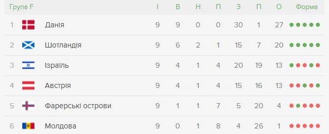 Тільки у цій групі вже немає жодної інтриги. Данія ще раніше гарантувала собі перше місце, а шотландці – друге. В останньому турі ці команди зіграють між собою, але на турнірне становище цей поєдинок ніяк не вплине. Австрія, яка наразі йде 4-ю, забезпечила собі плей-офф через Лігу націй.