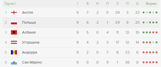 15 листопада: Сан-Маріно – Англія, Польща – Угорщина.