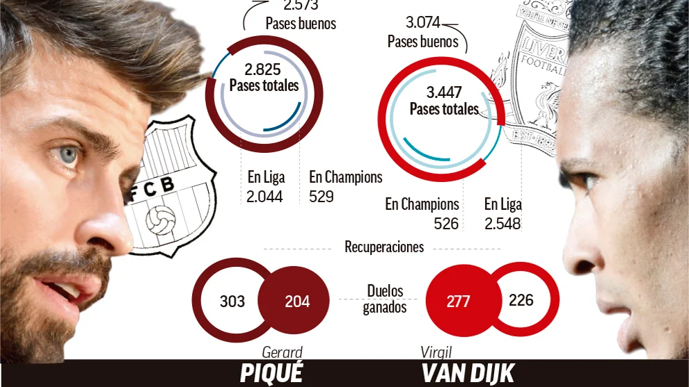 У поточному сезоні ван Дейк відчутно перевершує навіть Піке, хоча захисник Барселони проводить один з найкращих своїх періодів у футболі. Вірджил виграв 226 єдиноборств з 277, у Жерара – 204 з 303. Ван Дейк виконав більше точних пасів (3074 з 3447), але відсоток у нього дещо нижчий, ніж у Піке (2573 з 2825), а якщо брати тільки ЛЧ, то іспанець навіть перевершує опонента (529 проти 526).
