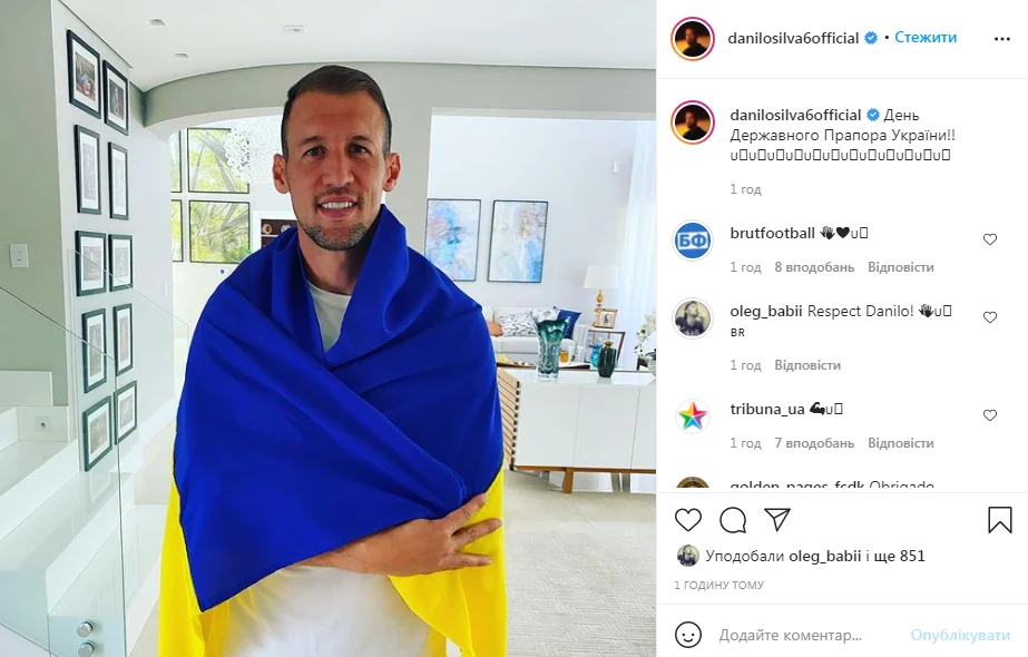 Бразильський екс-захисник Динамо Даніло Сілва сьогодні святкує разом з усіма українцями.