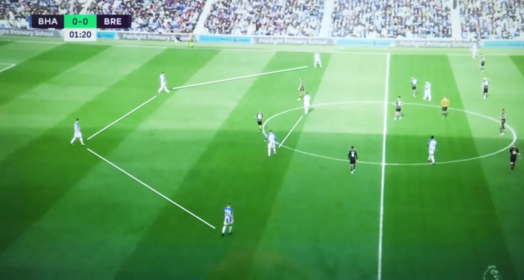 У Брайтона хороший баланс. Центральна вісь сформована з шести футболістів. Кожен завжди має щонайменше два варіанти для просування. Якщо суперник насичує центр, перекриваючи лінії передач, тоді свободу отримують фулбеки, які готові атакувати по всьому флангу (частий елемент – вривання між крайнім і центральним захисником ворога). Форвард і "десятка" опускаються для розіграшів глибше, а у вінгерів звільняється простір для дриблінгу.