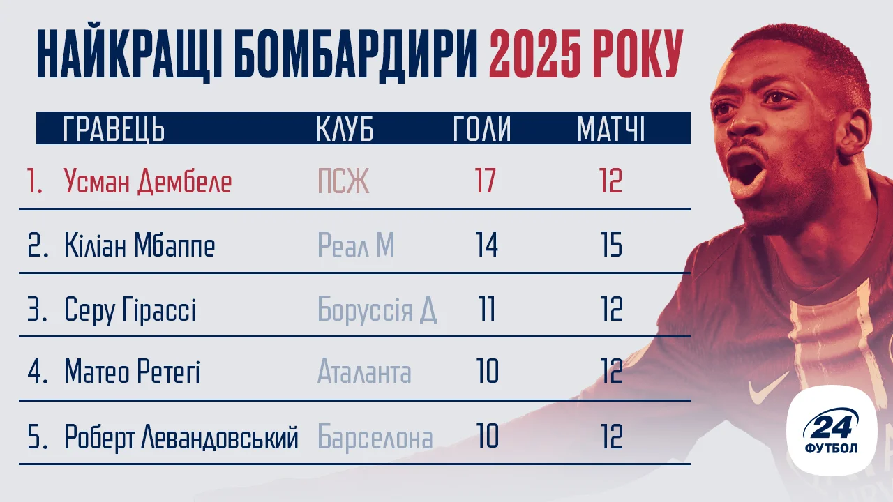 Француз розпочав 2025 рік, вражаючи неймовірною результативністю. Усман зіграв у 12 матчах, забивши 17 голів (на кінець лютого). Це робить його найкращим бомбардиром року прямо зараз. За цей період Дембеле оформив три дублі і два хет-трики. Такого від нападника не очікував ніхто. Цей сезон стає вже точно найкращим за всю кар'єру француза, оскільки він вже перевершив здобутки, які були під час виступів за Дортмунд.