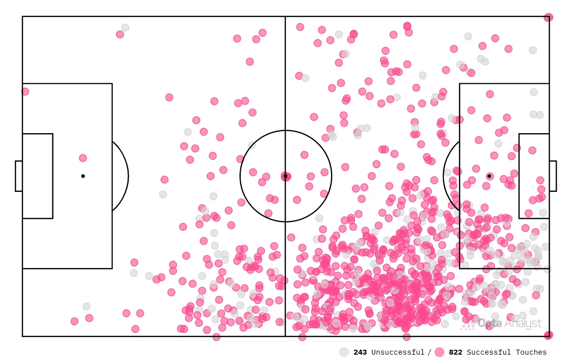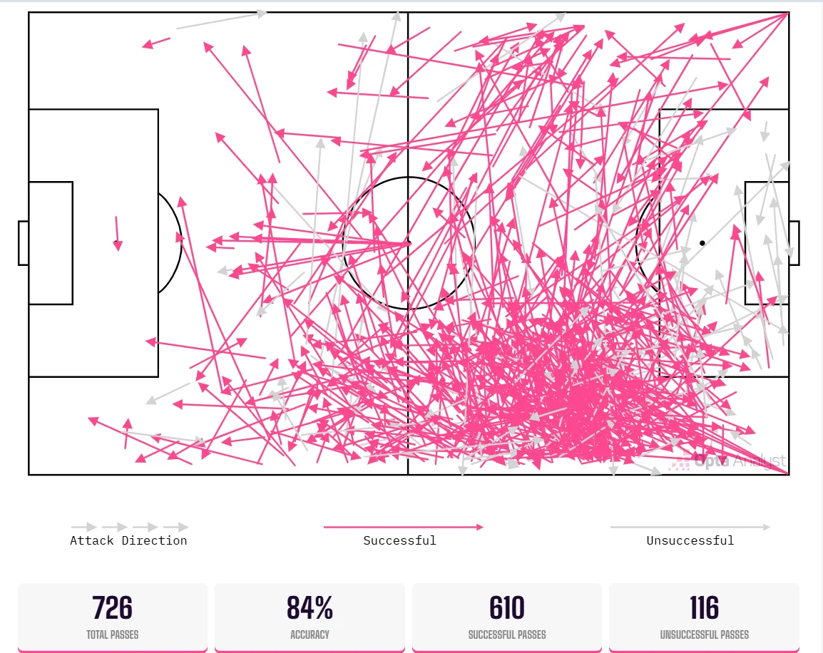 Звісно, зі зміною позиції креативність Дембеле дещо впала в останніх матчах. У його перших 17 зустрічах він створював у середньому 3,6 моменти на 90 хвилин, а в останніх 11 – 2,7. Утім, безсумнівно, Усман залишається найвпливовішим гравцем своєї команди в атаці. Крім того, в центрі атаки від нього чекають голів, а це він забезпечує.