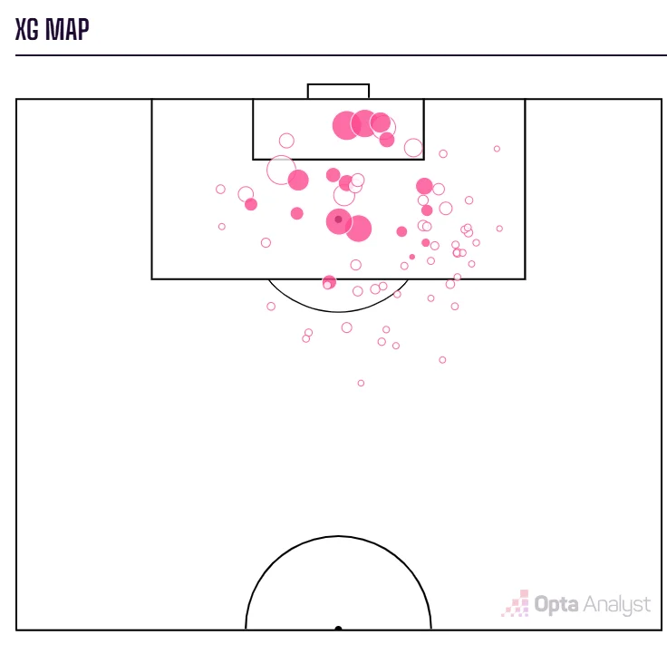 У Лізі 1 Дембеле забив 17 голів при xG 11,97 (ЛЧ 6 при xG 5,17). У француза влітає все те, що не залітало у минулому сезоні. Між показниками невелика різниця, спад неминуче буде, але це ніяк не можна передбачити.