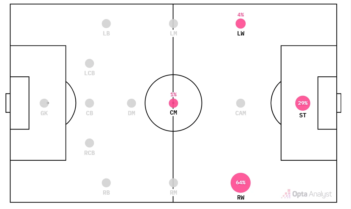 Луїс Енріке переважно використовує Дембеле праворуч на фланзі поряд з Хакімі. Рідна позиція для француза, але у рукаві іспанського фахівця є декілька козирів. Усмана в цьому сезоні можна було побачити зліва і в центрі півзахисту. А останнім часом Луїс Енріке зробив із нього хибну дев’ятку. Варто сказати, що на цій позиції в центрі атаки Дембеле нестримний – два дублі, два хет-трики і ще кілька голів. Непогано для природженого вінгера. І, здається, самому французу теж комфортно від перестановок тренера.