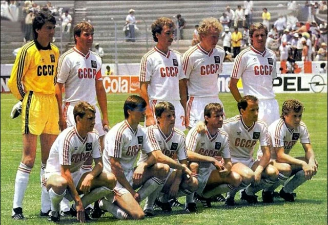 СРСР перед дебютним матчем на ЧС-1986. Анатолій Дем'яненко - другий у верхньому ряду (зліва направо)