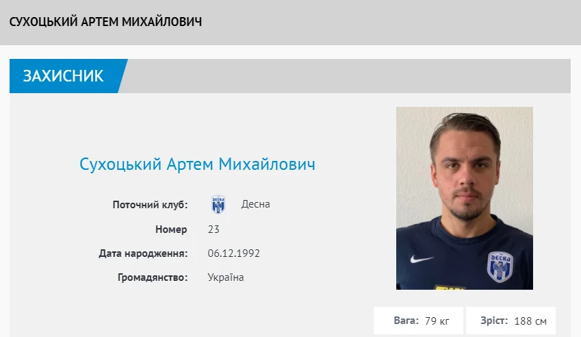 Десна внесла в заявку на сезон чемпіонату України захисника Артема Сухоцького, повідомляє офіційний сайт УПЛ.