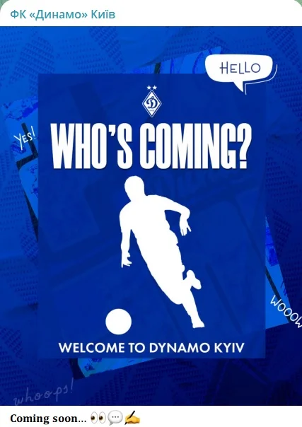 Київський клуб у соцмережах опублікував картинку загадкового гравця з написом: "Хто йде? Ласкаво просимо до Динамо". Паралельно ТаТоТаке опублкувало інсайд, який відкриває завісу над секретом.