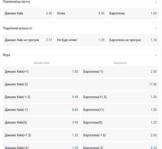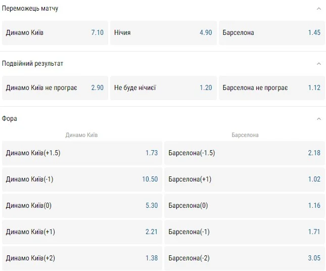 Динамо Київ – Барселона: прогноз букмекерів на матч