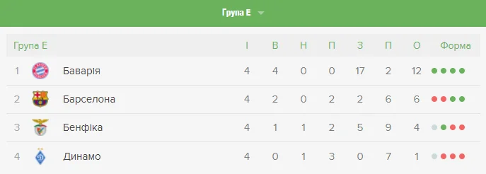 На дворі вже кінець листопада, а у Динамо в Лізі чемпіонів досі красується "нуль" в графі забитих голів і всього одне очко в активі. Неймовірно, але навіть за такого розкладу у киян залишаються шанси на 1/8 фіналу – для цього необхідно перемогти Баварію й Бенфіку за умов двох поразок Барси в останніх двох матчах. Варіант виглядає фантастичним, але "орли" вже громили каталонців, а мюнхенці вийшли в плей-офф ще тур тому.