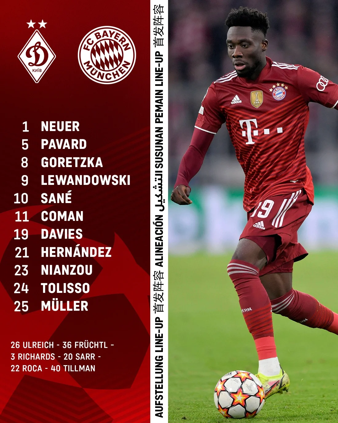Баварія: Нойєр – Павар, Ернандес, Куассі, Девіс – Горетцка, Толіссо – Сане, Мюллер, Коман – Лєвандовскі