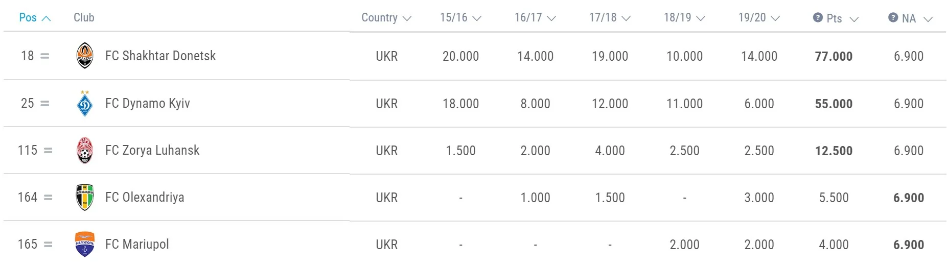 Розподілити путівки в єврокубки за клубним рейтингом УЄФА.