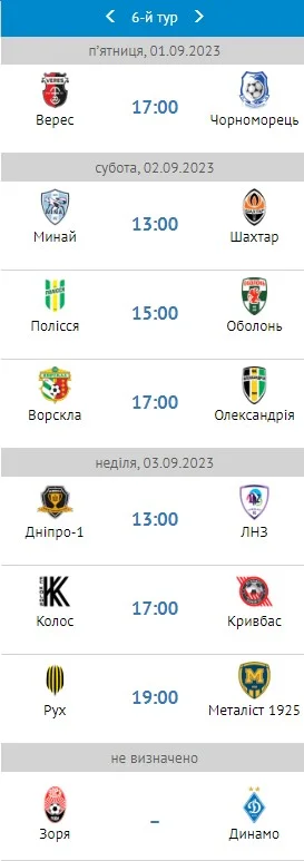 Але це не єдина гра, яку кияни перенесли. На сайті УПЛ також немає дати поєдинку 6-го туру Динамо проти Зорі (була призначена на 2 вересня, через день після мату-відповіді з Бешикташем).