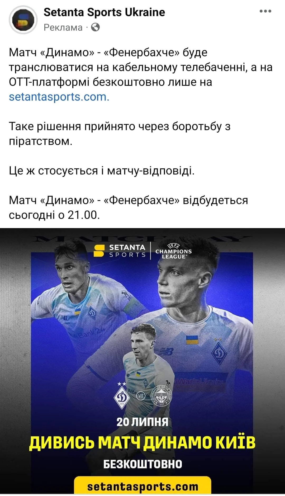 Динамо – Фенербахче: де дивитися матч 20 07 2022