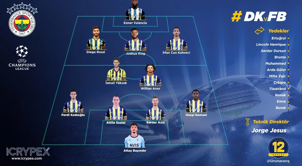 Фенербахче: Алтай – Осайї-Самуель, Азіз, Салай, Кадіоглу – Кахведжі, Юксек, Вілліан Арао – Кінг, Еннер Валенсія, Россі