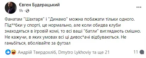 Заступник головреда Української правди Євген Будерацький звернувся до прихильників обох наших клубів.