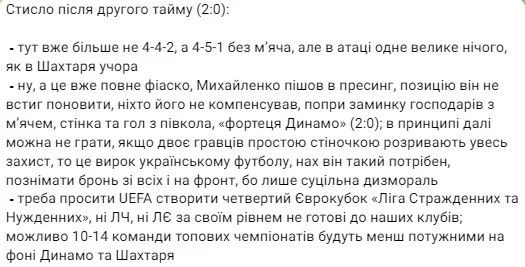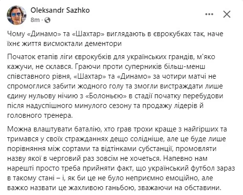 Чимало літер витратив на формулювання своєї думки Олександр Сажко із Трибуни. Під прицілом, зрозуміло, не лише Динамо.