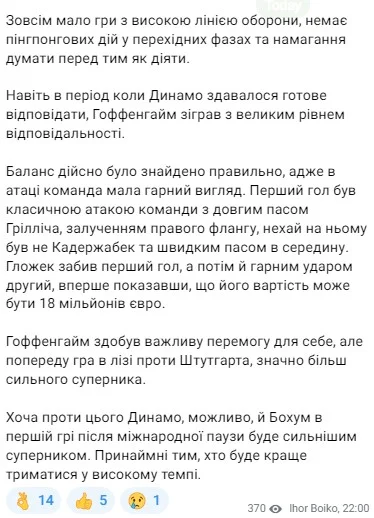 Конкретніше по матчу з Хоффенхаймом пише Сергій Тищенко, блогер Футбол 24.