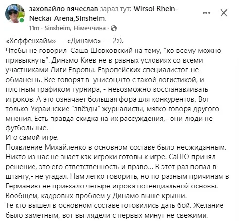 Експерти та вболівальники висловилися після матчу 2-го туру Ліги Європи Хоффенхайм – Динамо (2:0).