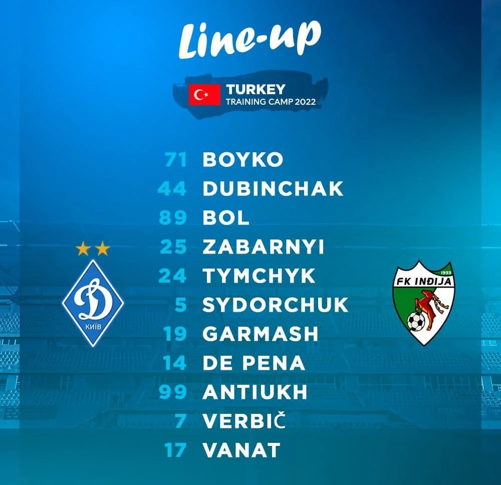 Динамо – Інджия: стартові склади та онлайн-відеотрансляція матчу 13 02 2022