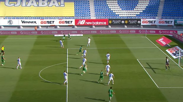 Гості забили швидкий м'яч. Караваєв обрізався в центрі, Біловар допрацював, але на ауті Михайліченко п'яточкою поміж ніг Волошину відкотив під вільну подачу Назаренку, Вівчаренко програв Гуцуляку повітря, Йосефі скористався тим, що Яцик ловив гав на куті воротарського. Так не має права грати півзахисник, який хоче отримати більше шансів на основу. Біловар необачно йде вперше, його легко накриває зграя з 3-4 людей у зеленому. Назаренко знову знаходить своїм прострілом партнера в ударній позиції, але Йосефі блокують. Йде атаку другим темпом, яку Гайдучик не встигає замкнути після подачі з правого кута.